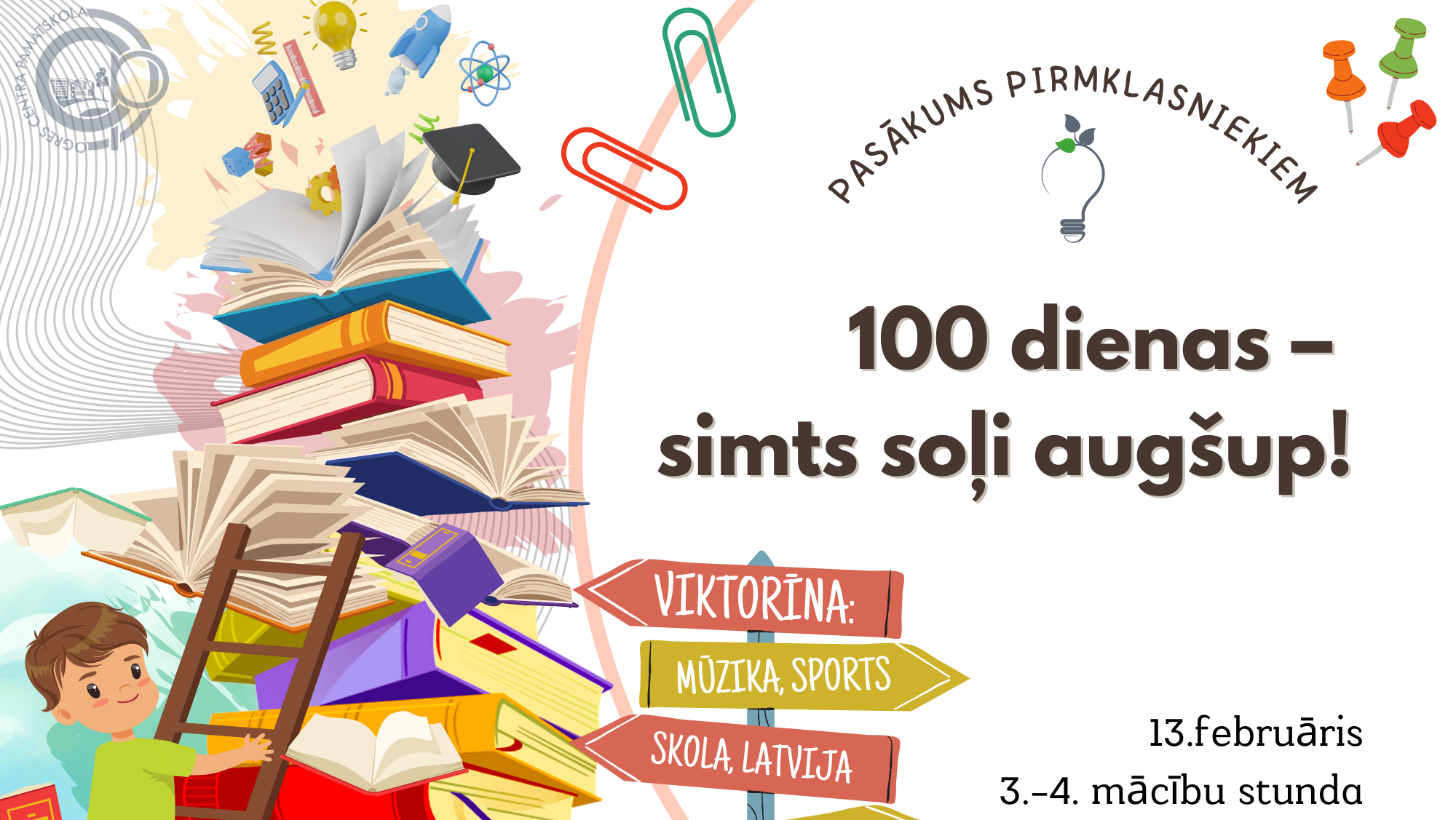 Šodien, 9.februārī, pēc brīvlaika skolas atgriežas pirmklasnieki, un šī nedēļa viņiem ir īpaši – aprit tieši 100 dienas, kopš viņi uzsāk savas skolas gaitas. Šajā laikā bērni ir spēruši savus pirmos nopietnos soļus zinību pasaulē: iemācījušies lasīt, rakstīt, rēķināt, draudzēties, klausīties un sadarboties. Katru dienu viņi ir kļuvuši drošāki, gudrāki un patstāvīgi.
