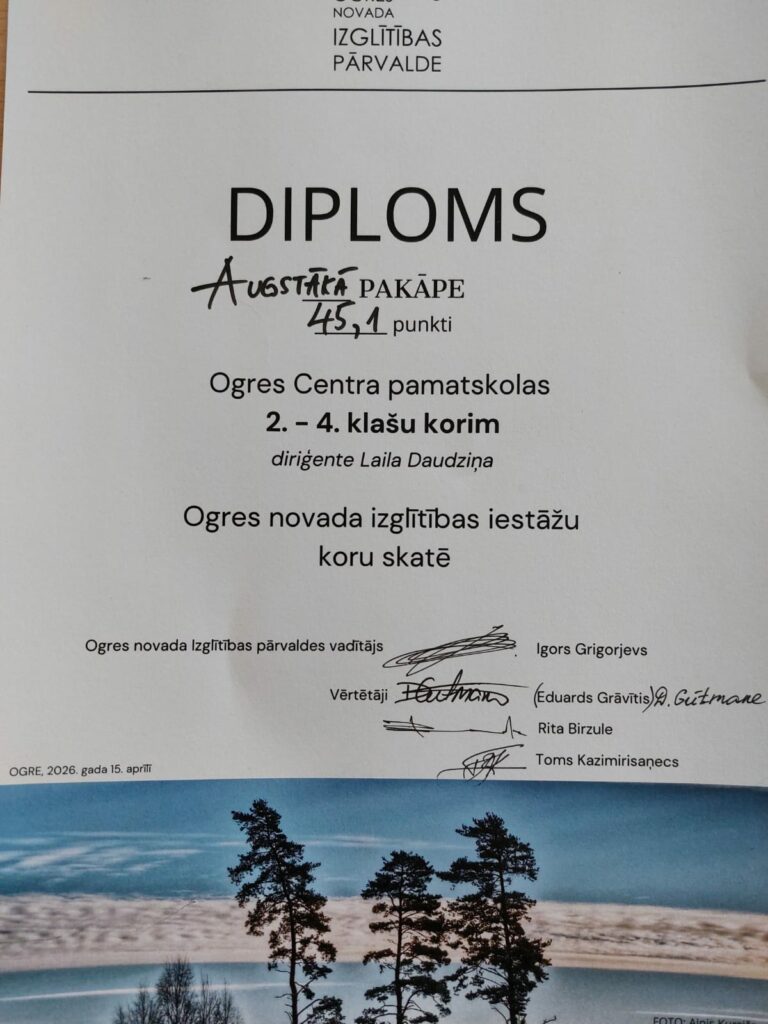 2.-4. klašu koris priecājas par koru skates rezultātu, iegūto augstāko pakāpi! Pateicība vecākiem par atbalstu un skaisti sapostajiem dziedātājiem! Gatavojamies doties 20.maijā dziedāt Mežaparka " Sidraba birzī"!