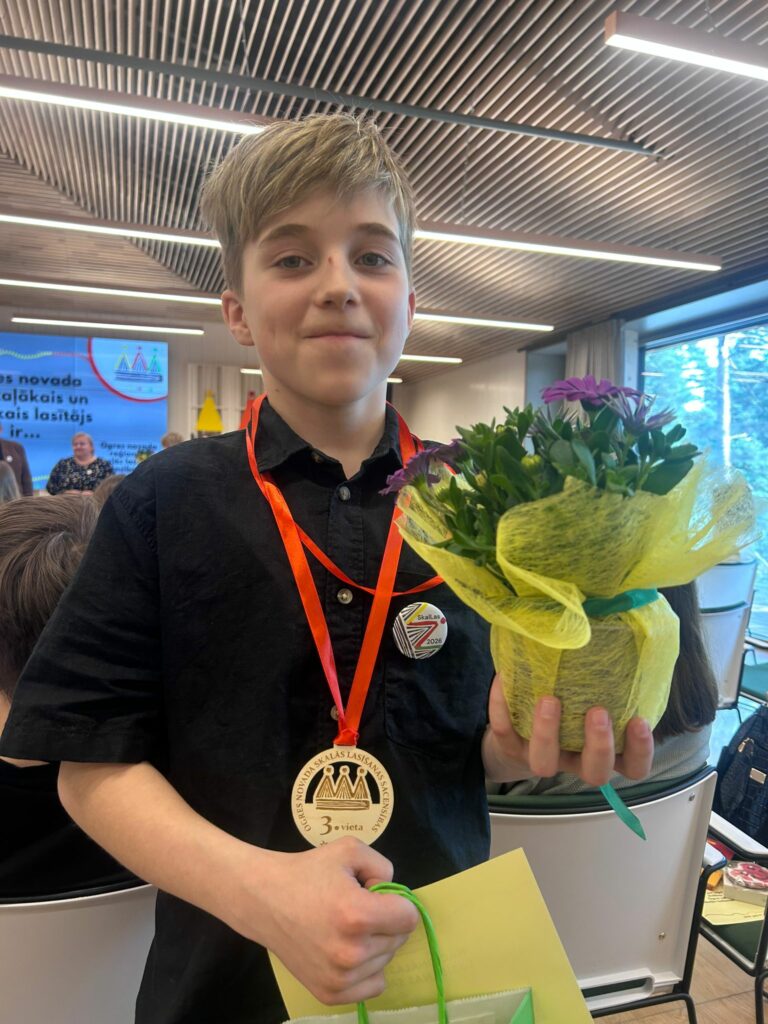 Ar prieku un lepnumu paziņojam, ka šī gada uzdevumi.lv matemātikas konkursā 3. vietu Latvijā izcīnījis mūsu 2.d klases skolnieks Reinis Kalniņš! Šis sasniegums ir apliecinājums neatlaidīgam darbam, zinātkārei un drosmei pieņemt izaicinājumus. Reinis ar savu piemēru iedvesmo arī citus klasesbiedrus ticēt saviem spēkiem un nebaidīties no grūtībām.