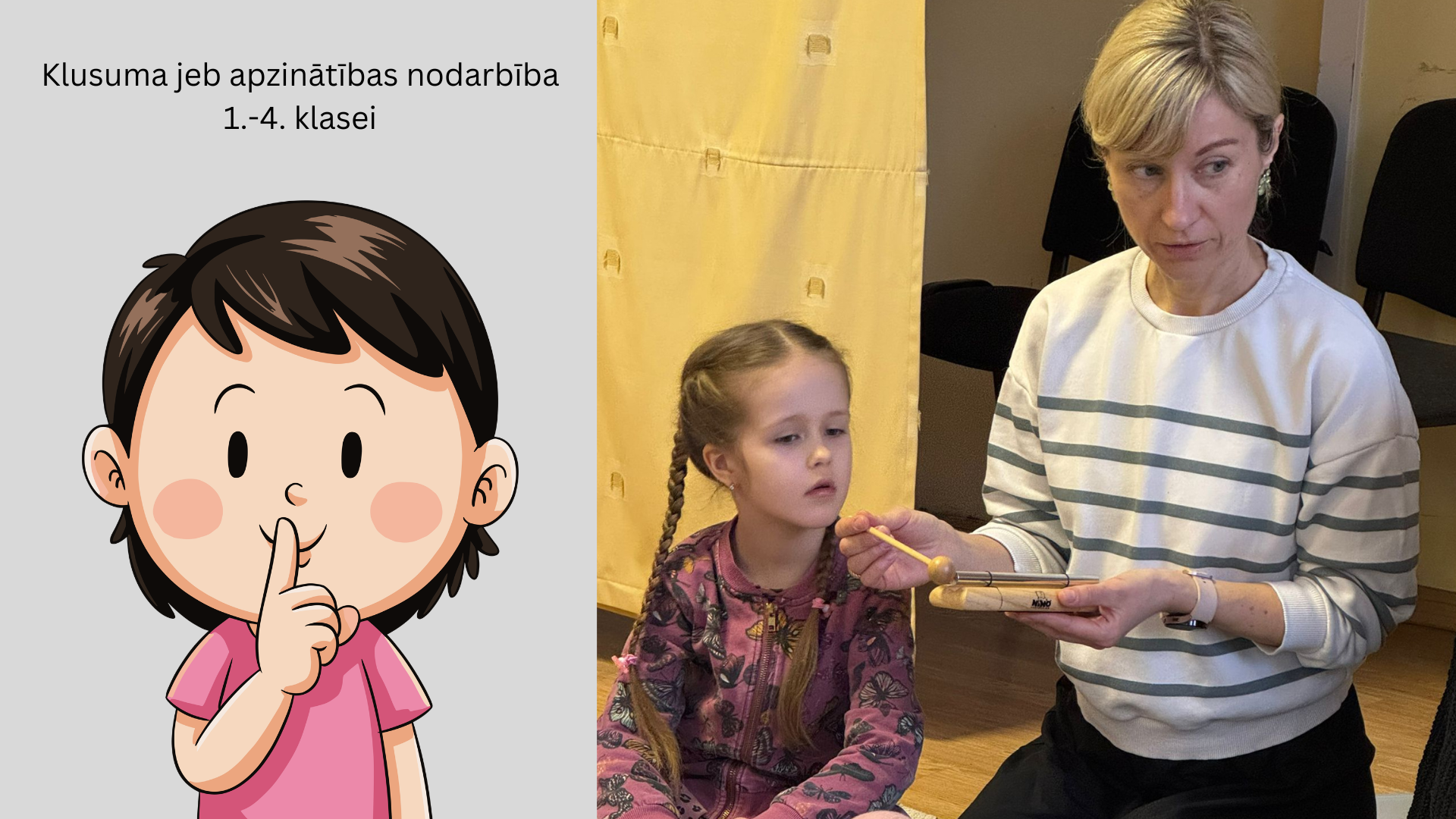 Marta pirmajā nedēļā Latvijā atzīmē Bērnu mentālās veselības nedēļu, tamdēļ Ogres Centra pamatskolas 1.-4. klašu skolēni tika aicināti apmeklēt Klusuma jeb apzinātības nodarbību. Nodarbības mērķis bija iepazīstināt skolēnus ar apzinātību un to, kā tā spēj mums katram palīdzēt būt mierīgam, sakoncentrēties darbam un justies labāk. Šoreiz Klusuma stundas galvenie vingrinājumi bija saistīti ar klausīšanos - klausīšanos dažādu zvaniņu skaņās, trokšņos klasē, skolā, ārpus skolas. Izrādās, kā arī šķietami klusā telpā iespējams saklausīt skaņas, ja vien apzināti tajās ieklausāmies un esam vērīgi! Vēršot uzmanību uz klausīšanās vingrinājumiem, skolēni mācās koncentrēties uz noteikto brīdi, uzdevumu un domās meklējot tajā, kas bijis vai vēl būs. Redzēt, dzirdēt, just to, kas notiek šobrīd, nozīmē mierīgāku prātu un harmoniskāku noskaņojumu skolēniem arī pēc nodarbības.
