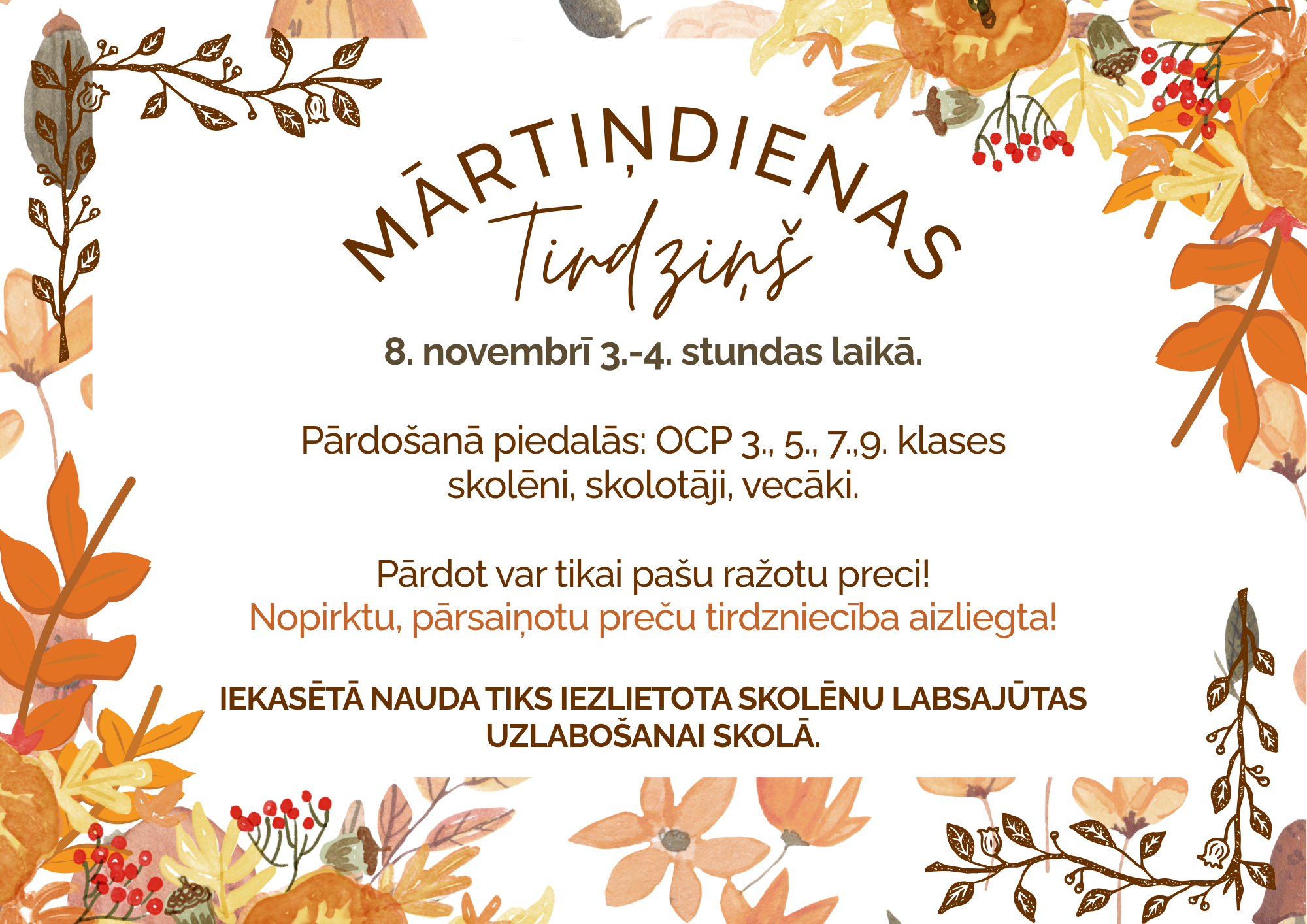 Ogres Centra pamatskolā š.g. 8. novembrī, 3.–4. stundas laikā norisināsies Mārtiņdienas tirdziņš.