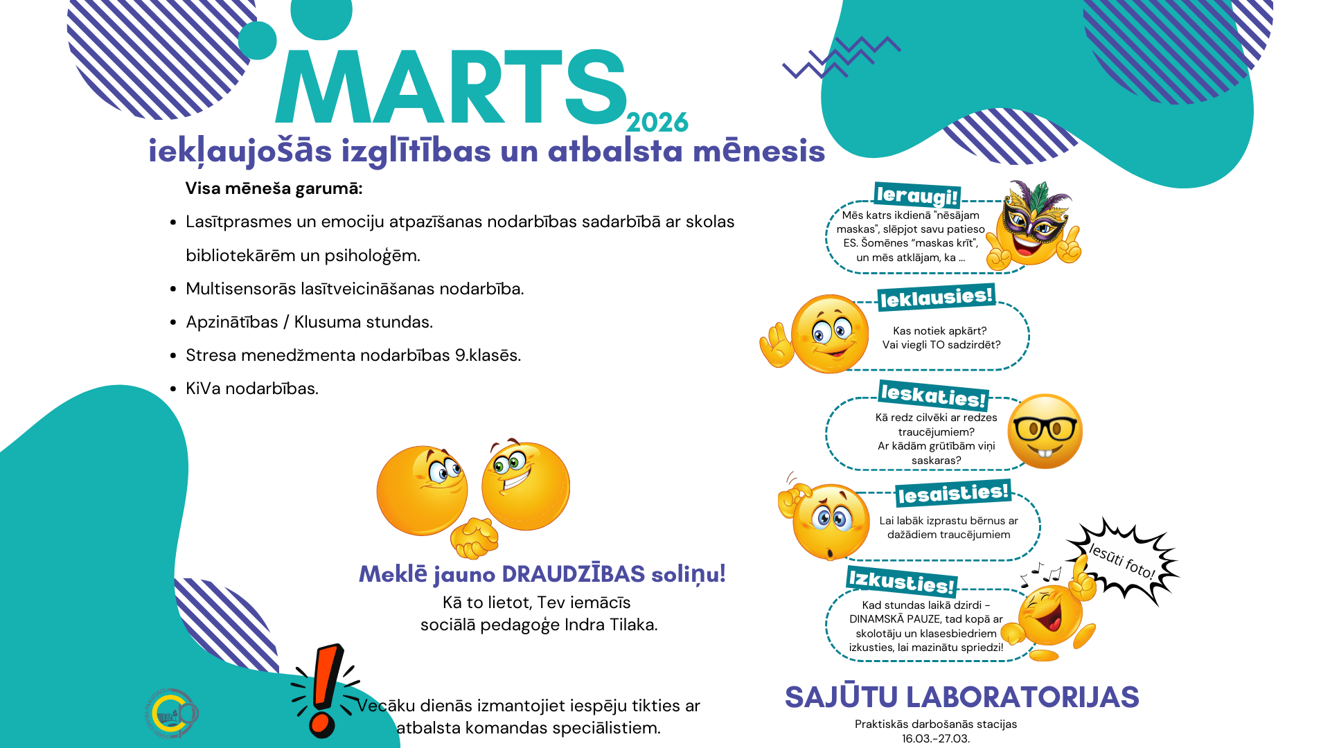 Marts – Iekļaujošās izglītības un atbalsta mēnesis mūsu skolā!