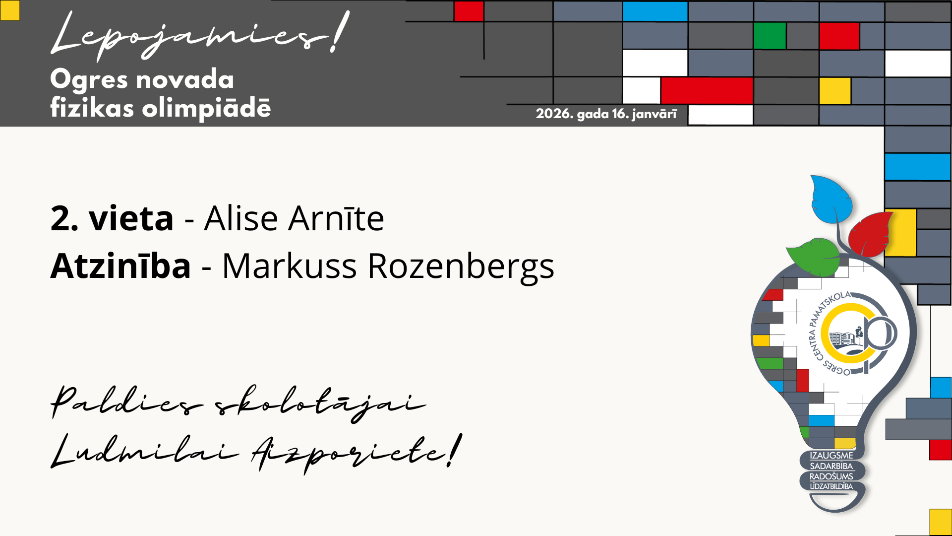 Lepojamies ar labiem rezultātiem novada fizikas olimpiādē 9. klašu grupā: