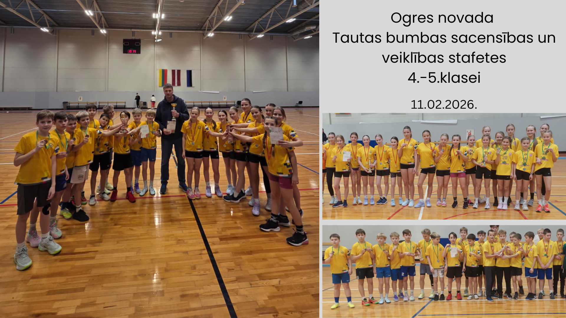 11. februārī Ogres novada sporta centra hallē notika Ogres novada sacensības “Veiklības stafetes” un “Tautas bumba” 4.–5. klašu grupai.