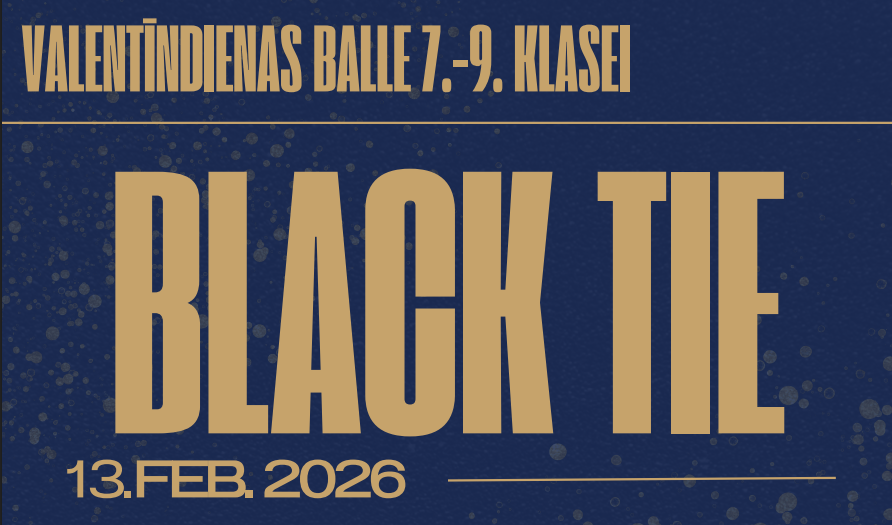 13. februārī no plkst. 18.00 līdz 21.00 7.-9. klašu skolēniem skolas aulā notiks Valentīndienas balle "BLACK TIE". Būs mūzika, konkursi, balvas, kā arī našķi (ja pats paņemsi līdzi).